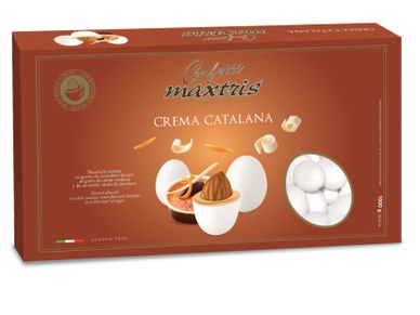 Toasted almond covered with white chocolate flavored with Catalan cream and a thin layer of sugar.