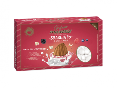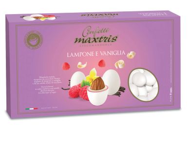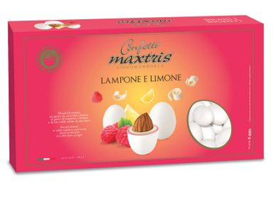 Toasted almond covered with raspberry and lemon flavored white chocolate and a thin layer of sugar.