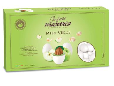 Toasted almond covered with green apple-flavored white chocolate and a thin layer of sugar.