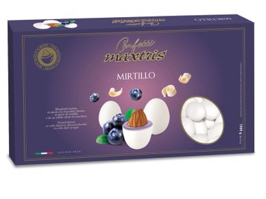 Toasted almond covered with blueberry flavored white chocolate and a thin layer of sugar.