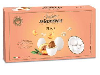 Toasted almond covered with peach-flavored white chocolate and a thin layer of sugar.