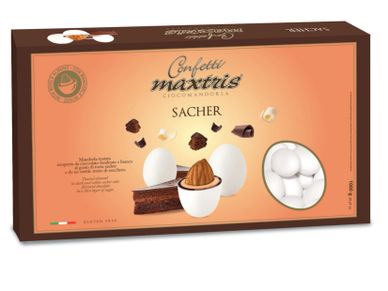 Toasted almond covered with dark and white chocolate with a sacher tart flavor and a thin layer of sugar.