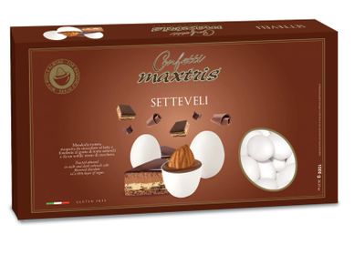 Toasted almond covered with mascarpone-flavored white chocolate with ground coffee, dark chocolate and a thin layer of sugar.