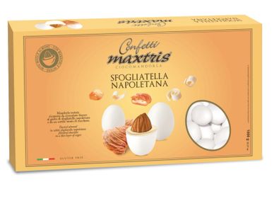 Toasted almond covered with white chocolate flavored with Neapolitan sfogliatella and a thin layer of sugar.
