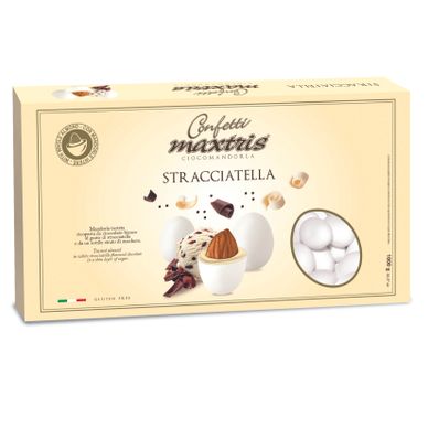 Toasted almond wrapped in a layer of stracciatella-flavored white chocolate, covered with a thin layer of sugar.