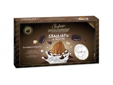 Toasted almond wrapped in a first layer of dark chocolate and a second layer of Sicilian cannoli-flavored white chocolate, covered with a thin layer of sugar.