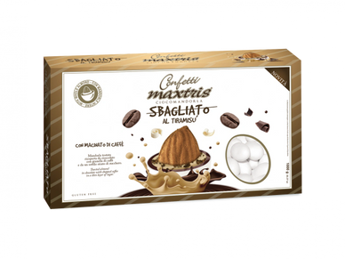 Toasted almond covered with tiramisu-flavored white chocolate and a thin layer of sugar.
