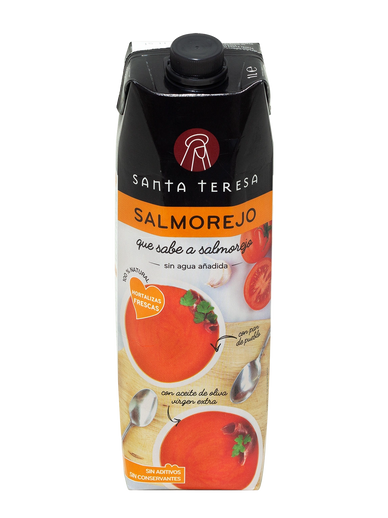 The Salmorejo (cold summer soup) Santa Teresa, made following the traditional recipe for this Andalusian dish, is prepared with the best natural ingredients. So you can enjoy a refreshing and nutritious dish, ready to eat.